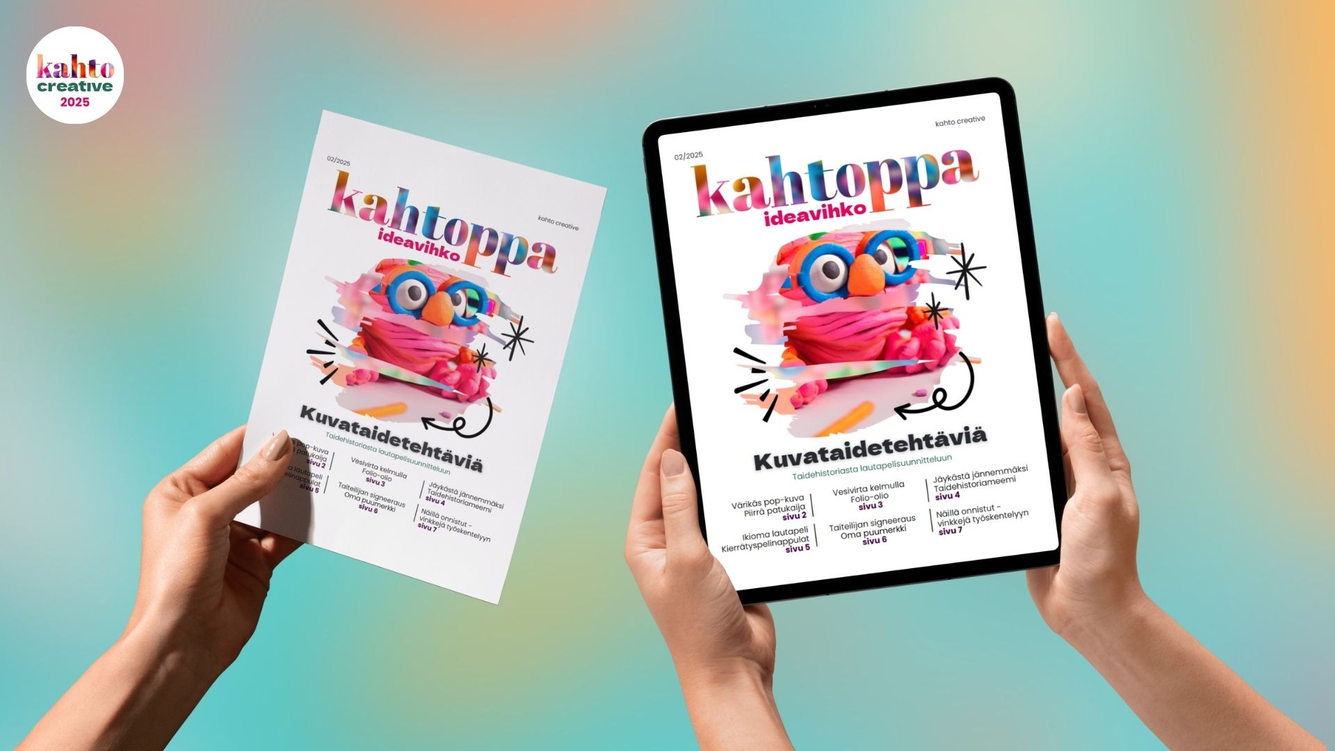 Digitaalinen Kahtoppa-ideavihko on helppo säilyttää digitaalisena ja tallentaa pilvipalveluusi. Voit näyttää tehtävän suoraan valkokankaalta oppilaille tai käyttää opetuksen suunnittelun pohjana.
