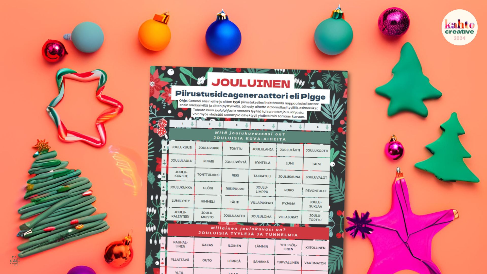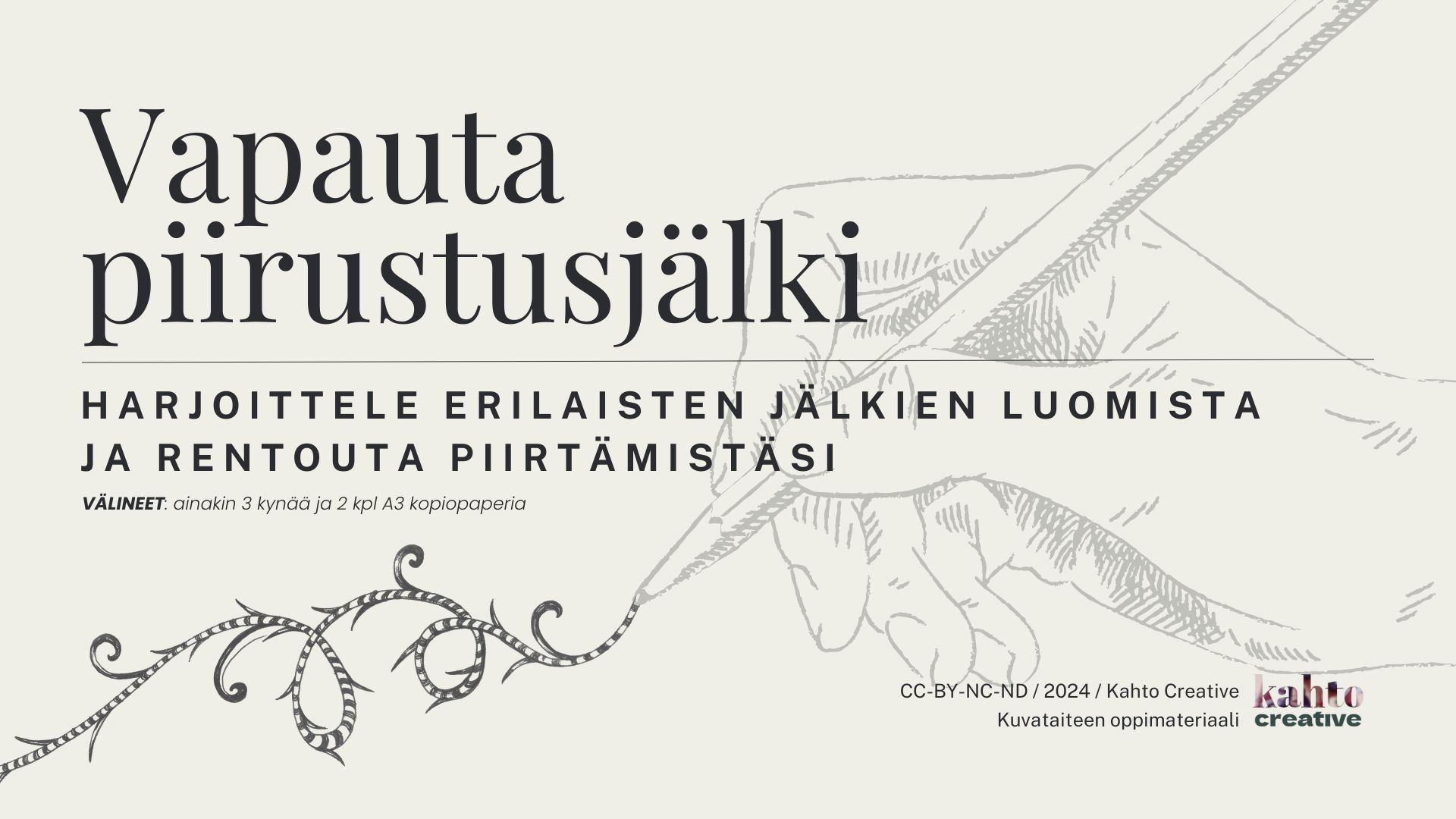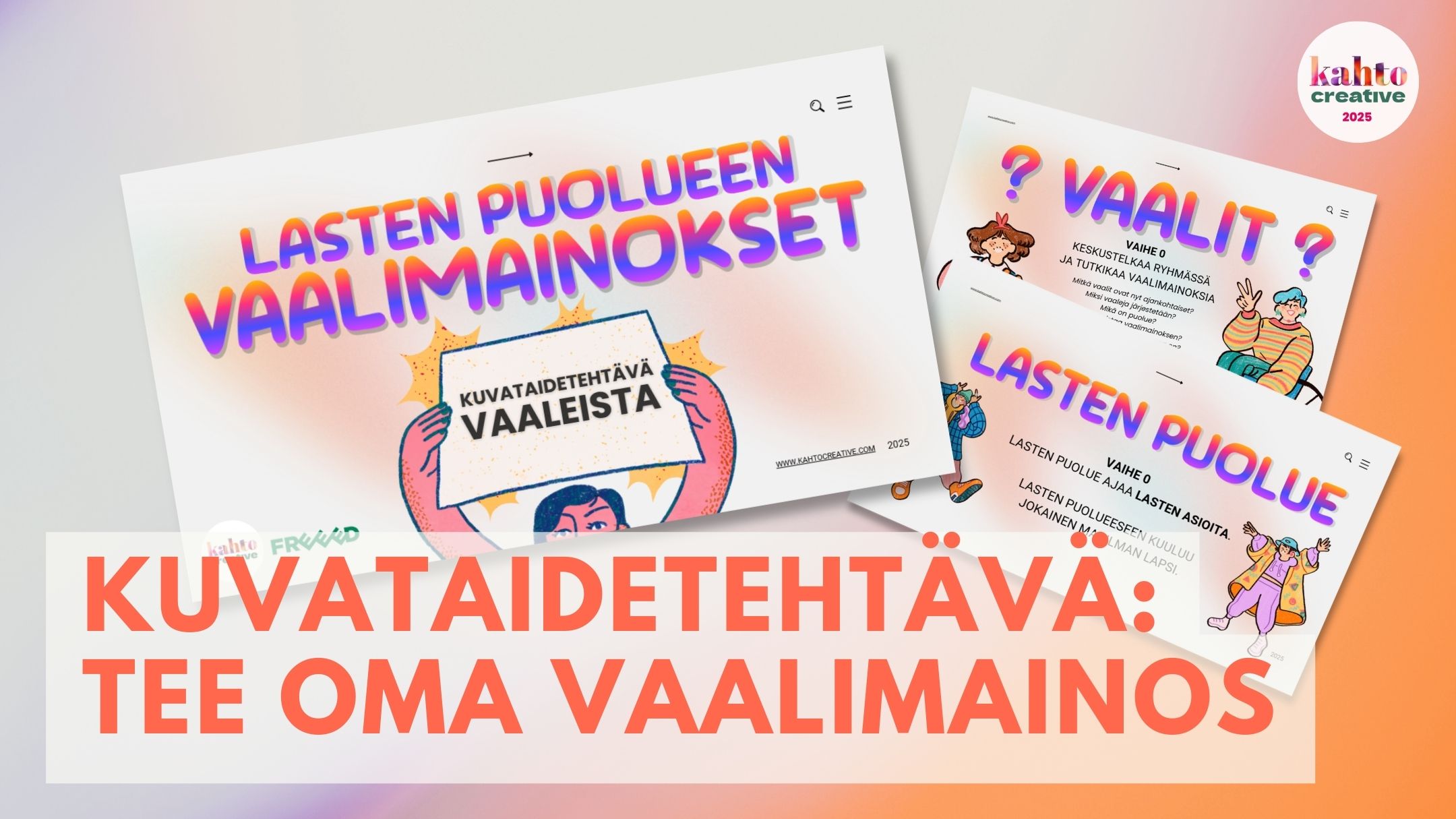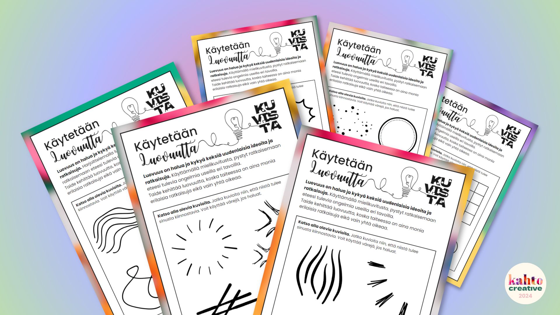 Kahto Creative käyttää jaettavissa materiaaleissa vain avoimen tai ostetun lisenssin kuvia ja videoita tai itse tuottamiaan tai tekoälyavusteisesti tuotettuja kuvia ja videoita. Tekijänoikeus suojaa lähtökohtaisesti teoksen, esimerkiksi oppimateriaalin tai taideteoksen, ilmaisumuotoa, mutta ei sen sisältöä tai ideaa. Lisätietoja opettajan tekijänoikeuksista löydät sivuistoilta https://operight.fi/ ja https://creativecommons.fi/.
